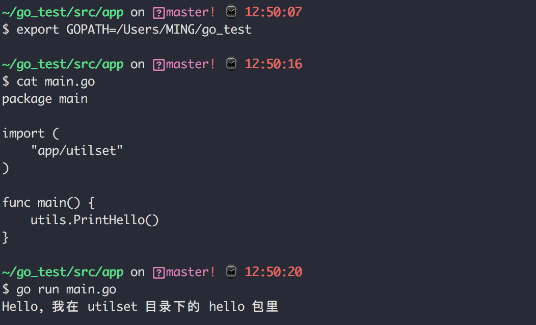 fmt.Println("Hello, 我在 utilset 目录下的 utils 包里")