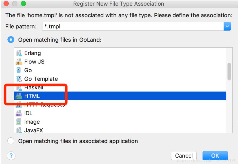 我们希望tmpl文件被识别为html文件,这样可以高亮,方便我们阅读。