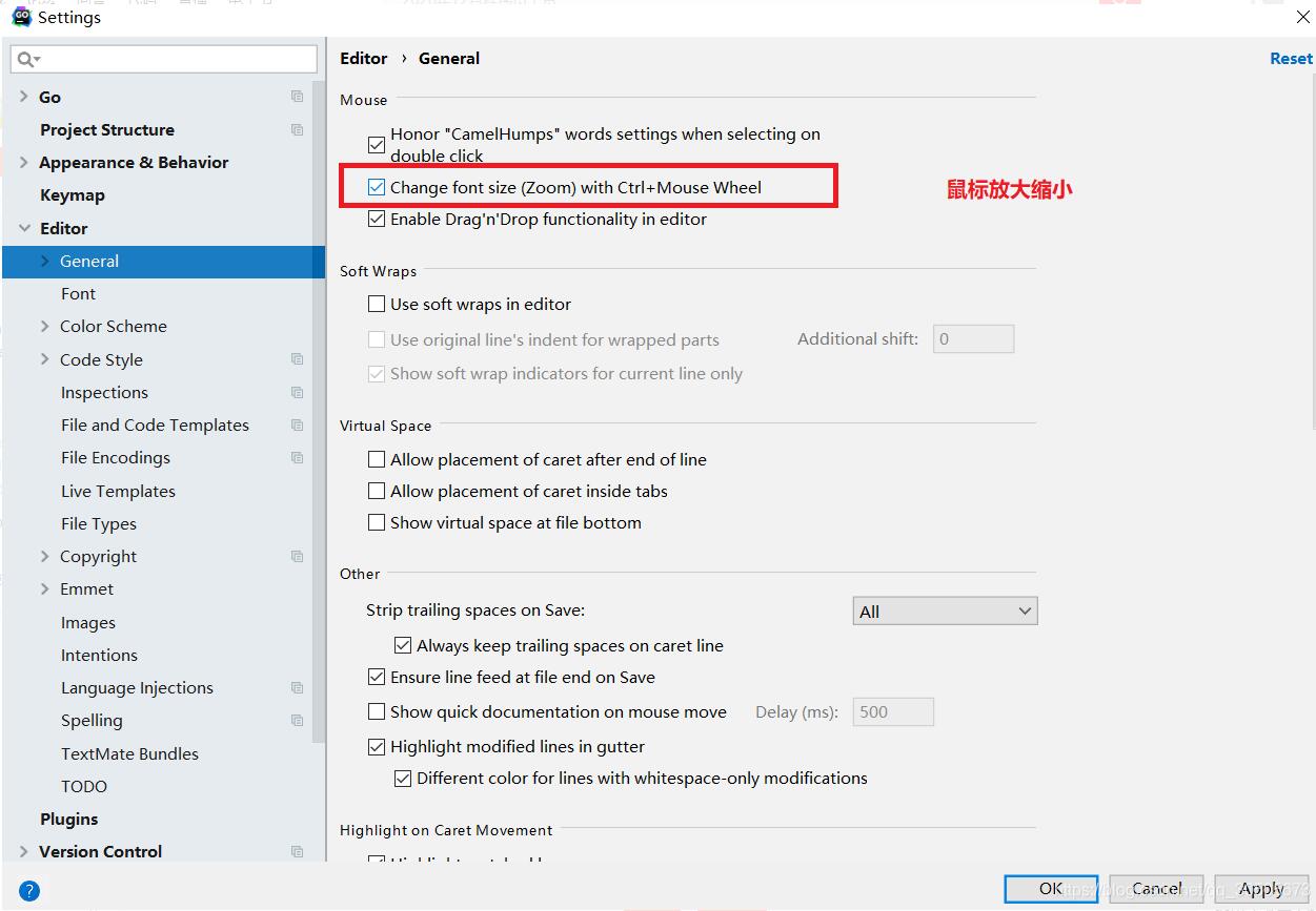 补充:goland通过鼠标字体进行放大缩小