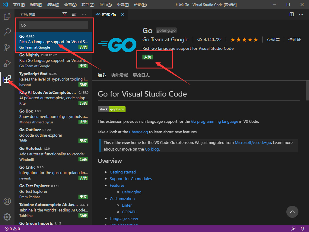 安装 GO 插件, 让 VS Code 支持 Go 语言开发