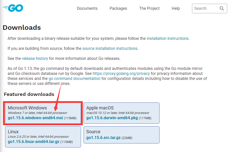 Go官方下载地址 : https://golang.org/dl/