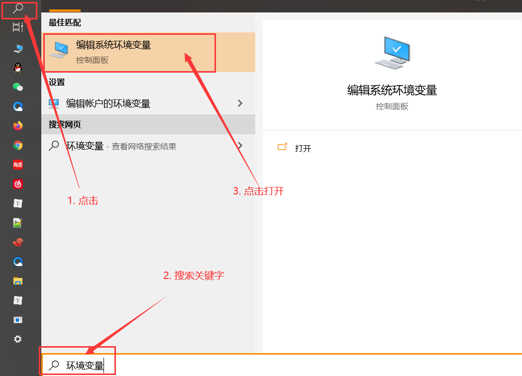 使用搜索工具搜索环境变量(Win10)