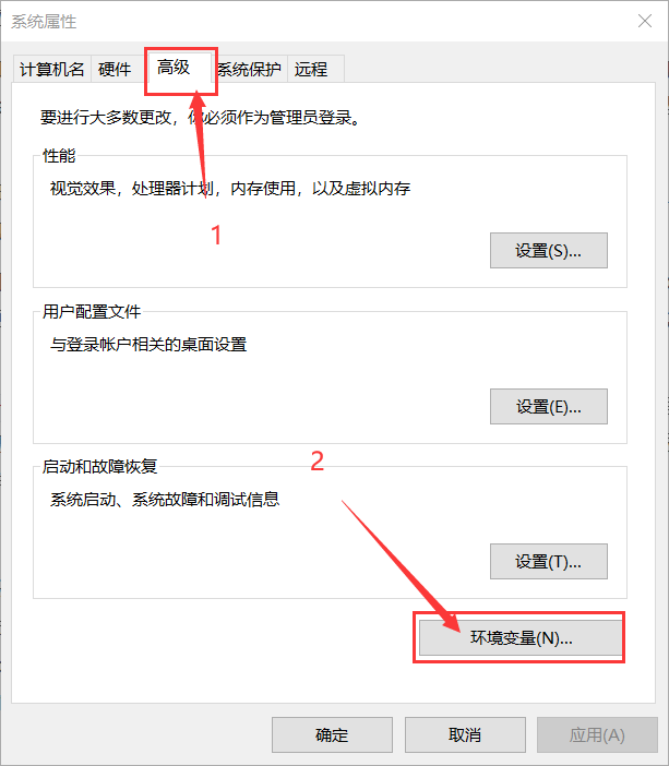 选择"高级", 再选择"环境变量"