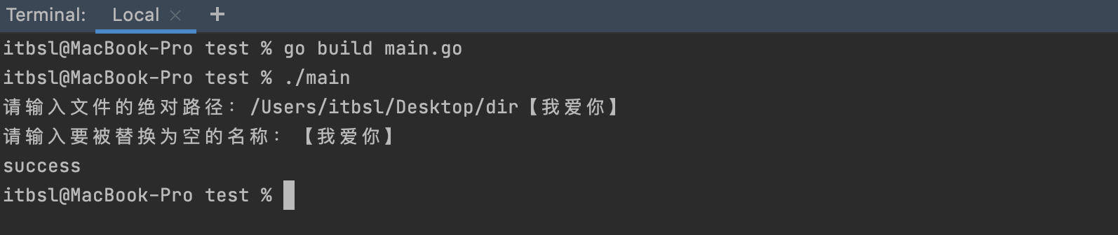 fmt.Print("请输入要被替换为空的名称:")