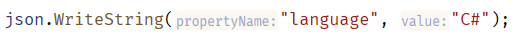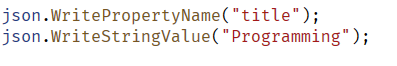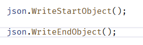 现在我想写一个json对象,那么就从Write StartObject () 开始,然后以WriteEnd Object() 结束 :