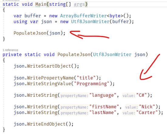 下面研究一下如何写入json文件。这里需要使用Utf 8JsonWriter 类。