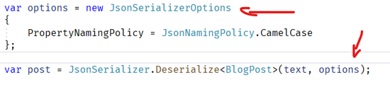 为解决这个问题,就需要使用 JsonSerializerOptions 类: