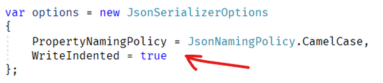 如果想让输出结果更好看一些,可以在 JsonSerializerOptions 里面进行相应的设置: