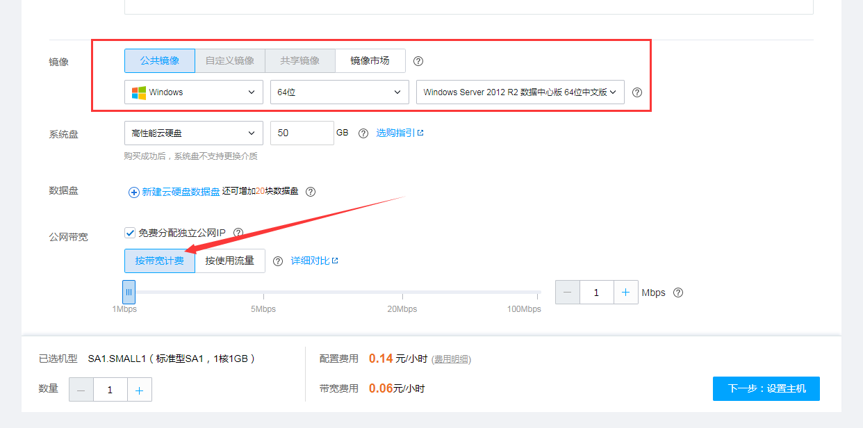 选择【按带宽计费】(因为你保不准用多少流量)