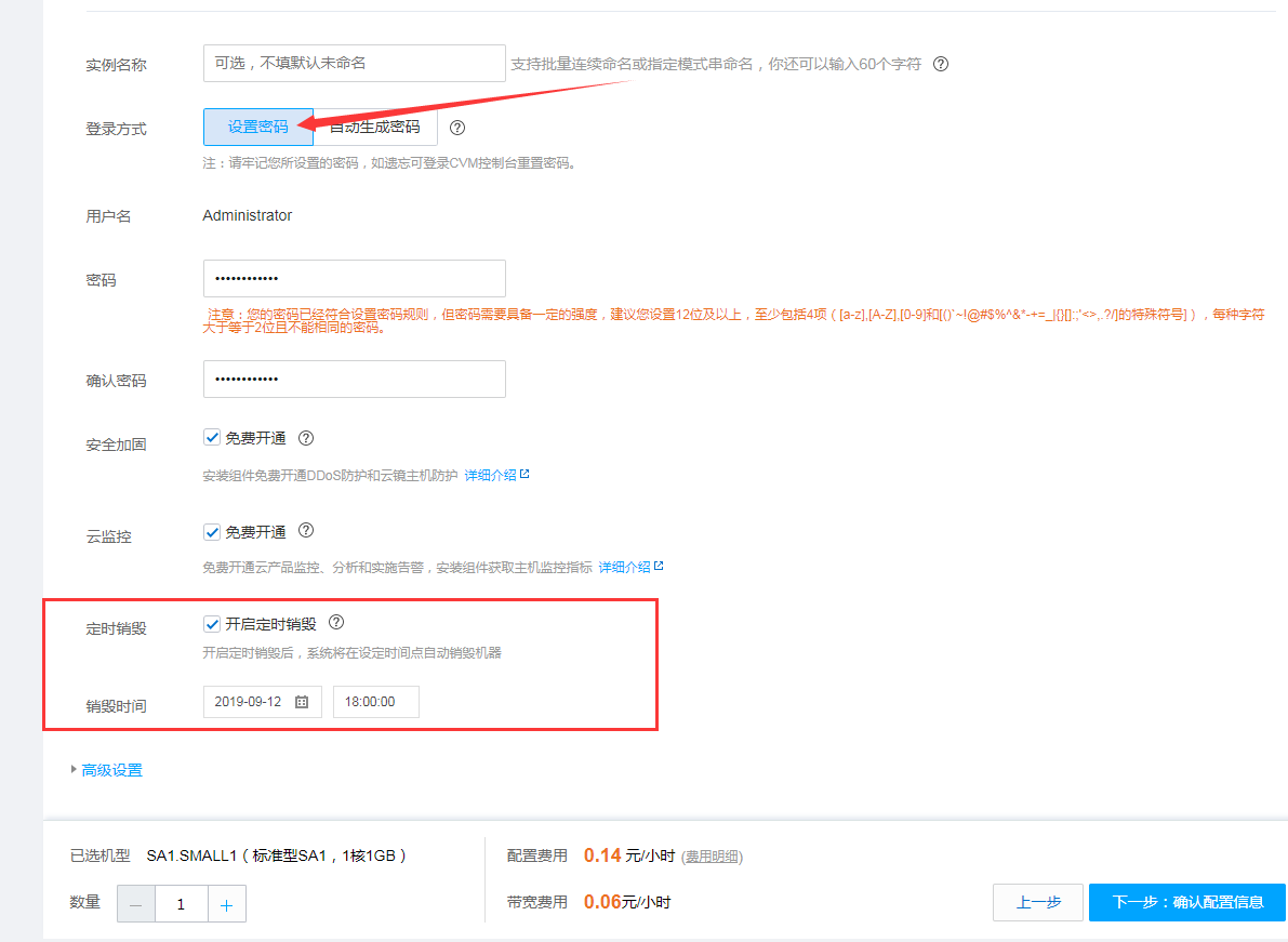 【定时销毁】这个要看你用不用,你也可以选择用完之后手动销毁,但是如果你忘记的话,会按时间继续扣钱的。(定时销毁一定要设置好时间,要不然你会发现用着用着突然就没了)