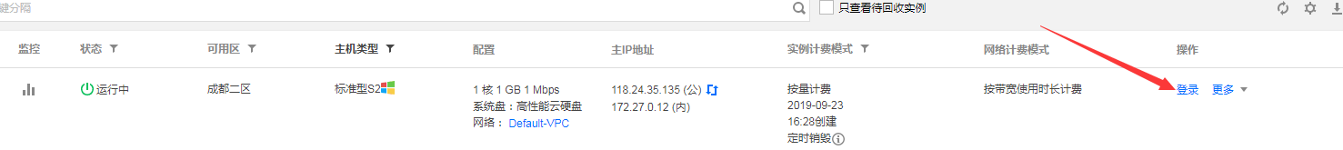 回到我们的控制台,在操作列中点击【登录】。