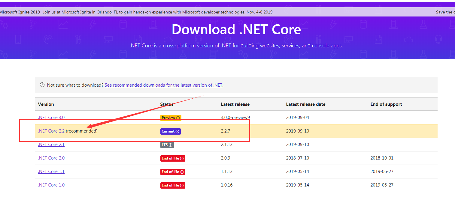 选择我们的.NET Core版本,我的是2.2的。