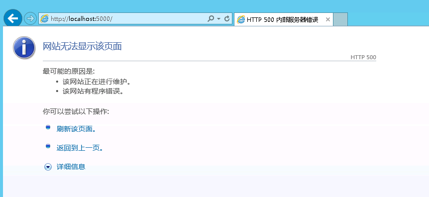 然后输入该地址就能访问了。诶,怎么内部错误了 o(゚Д゚)っ!