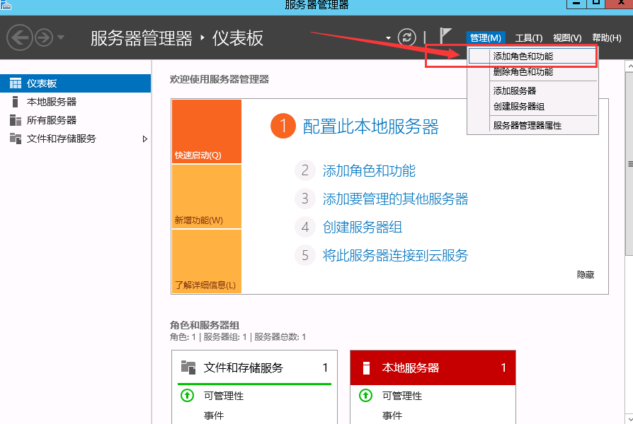 在管理里点击【添加角色和功能】