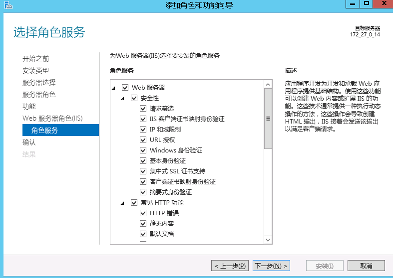 然后选择角色服务器,根据需求勾选。(我都勾上了,为了避免出现问题,反正用不用都先加上没多大坏处(~ ̄▽ ̄)~)。