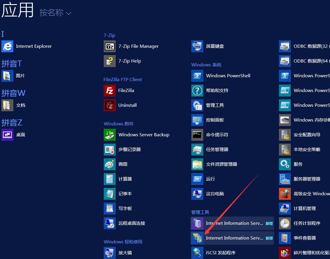安装完成之后,打开我们的IIS管理器。