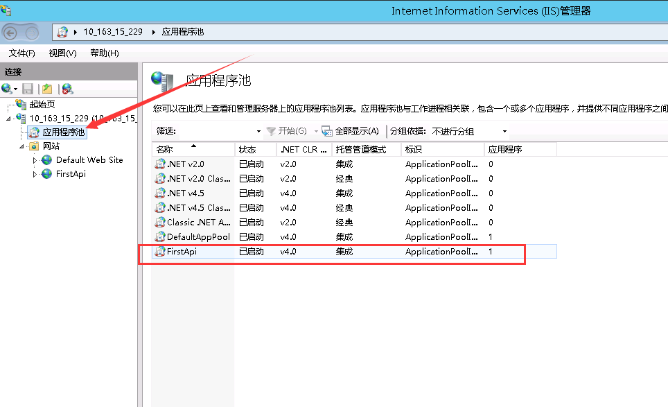 然后点击【应用程序池】,点开编辑我们刚刚创建的。