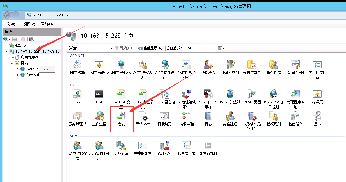 选择根节点的服务器,打开【模块】这一项。