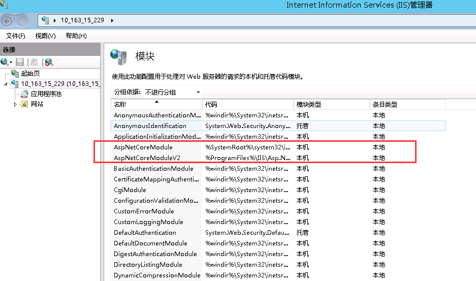 发现没有找到叫做【AspNetCoreModule】的托管模块,emmmmm好像是漏掉了。