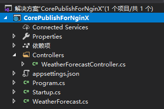 首先创建一个Net Core WebApi项目——CorePublishForNginX。