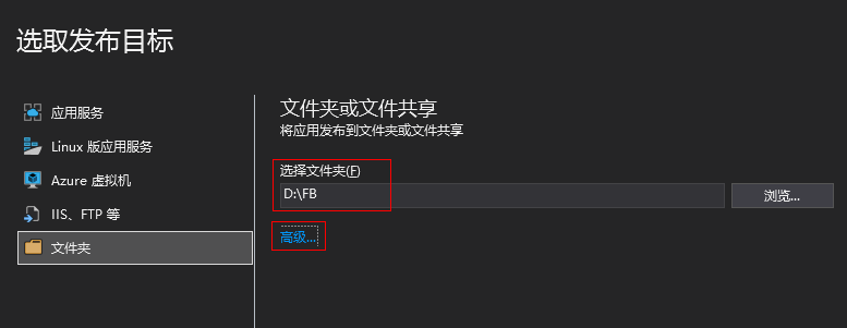 在界面中选择文件夹,然后在选择文件夹文本框中输入发布路径。