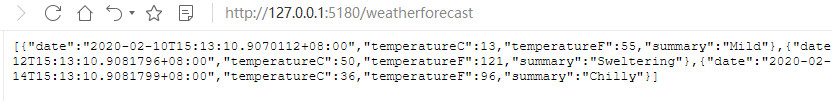 运行完NginX.exe,我们访问下http://127.0.0.1/weatherforecast,看看是否将80端口的消息发送到了5180端口。