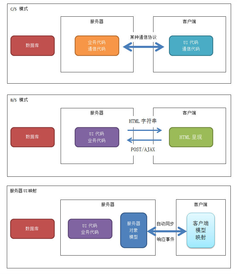 | 服务器UI映射 | C/S | B/S | B+C混合 | |