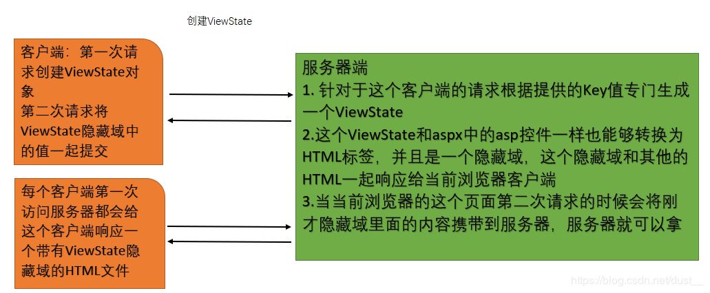 ViewState的本质是一个隐藏域,和原始的.aspx文件中的多出来的标签一样,都是一个隐藏域,第一次创建ViewState对象其实是创建了一个隐藏域