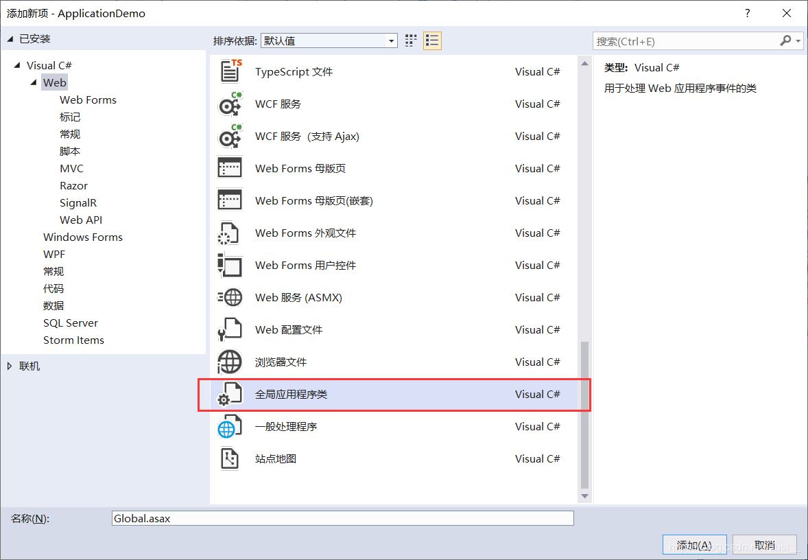 全局应用程序类:Global.asax,可以理解为Application对象主要在这个全局应用程序类中使用