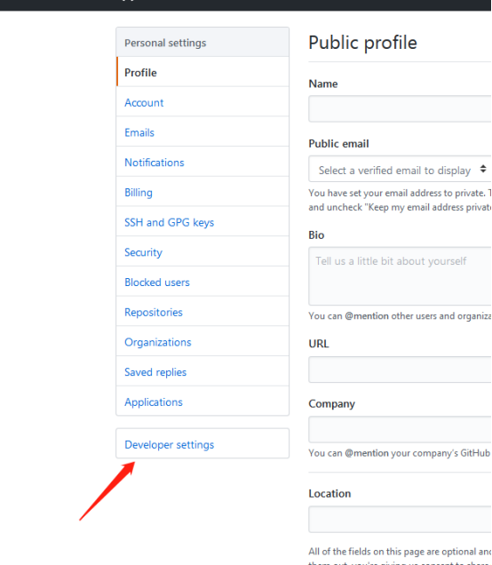 2:选择左侧菜单的“Developer settings”一项:
