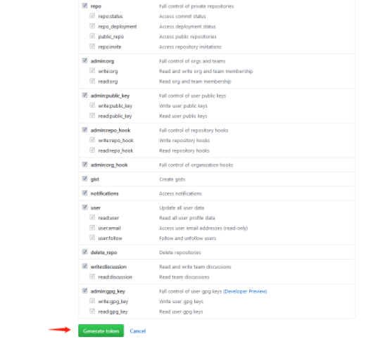 5:把以下选项全部勾选,然后点击下方绿色按钮,便可生成一个token。