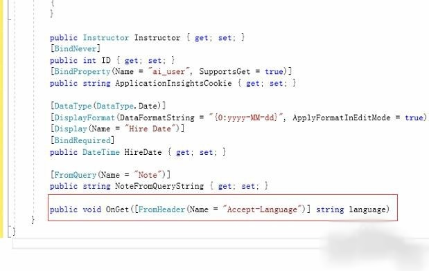 FromHeader属性。这个属性是从 HTTP 标头中获取值.通过HTTP传输过来,我们可以把值赋值给相对应的字段。如下所示,把HTTP表头的language值获取到,然后返回其值。