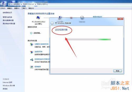 第六步:选择是之后它自动帮你在检测是什么问题让你的电脑不能上网,如图所示