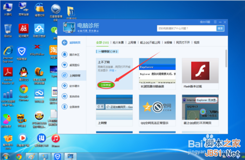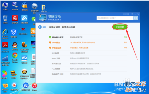 第四步:找到"上不了网"把鼠标指向"上不了网",然后会出现"立即修复",然后点击立即修复,如图所示