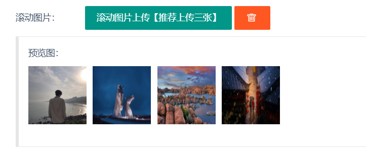 <li> <h6>滚动图片:</h6> <div class="layui-upload"> <button type="button" class="layui-btn" id="test2">滚动图片上传【推荐上传三张】</button> <button type="button" class="layui-btn layui-btn-danger" onclick="clearAll()"><i class="layui-icon"></i></button> <input type="hidden" name="ScrollingGraph" id="ScrollingGraph"/> <blockquote class="layui-elem-quote layui-quote-nm" style="margin-top: 10px;"> 预览图: <div class="layui-upload-list" id="demo2"></div> </blockquote> </div> </li>
