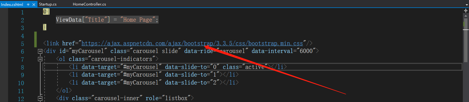 在Home/Index中引入cdn文件,然后我们启动项目,看看会发生什么!