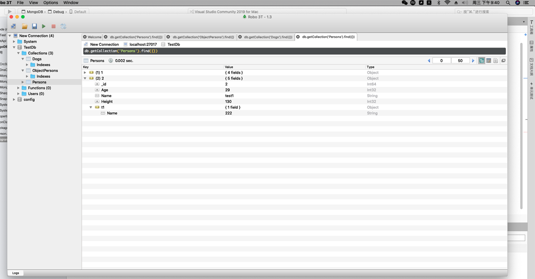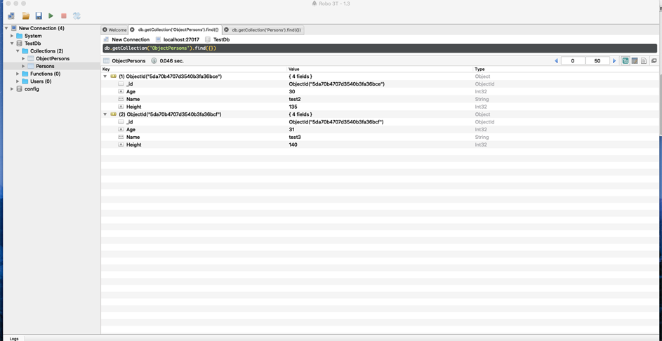 IMongoCollection<ObjectPerson> collection1 = database.GetCollection<ObjectPerson>("ObjectPersons");//大致相当于表