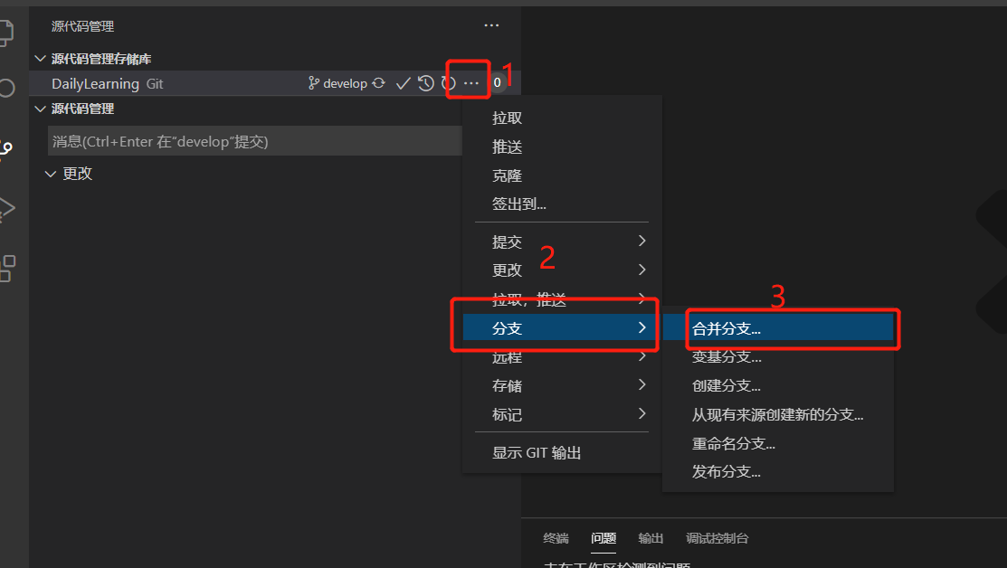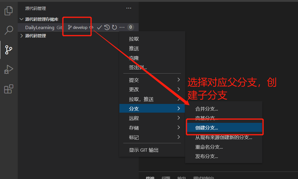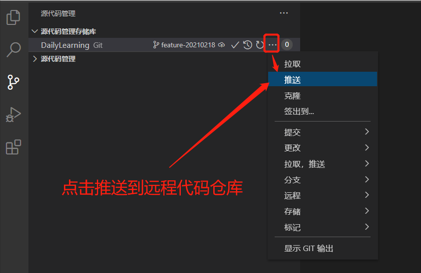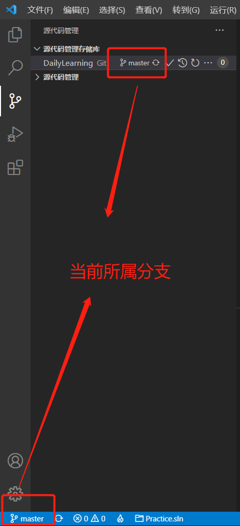 创建分支并推送到远程代码库:1、切换到源代码管理视图: