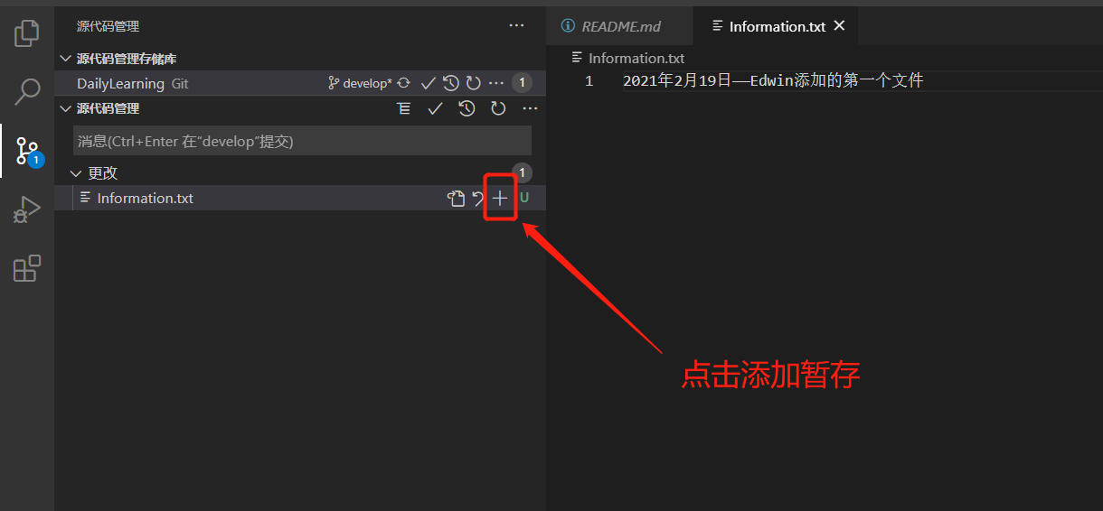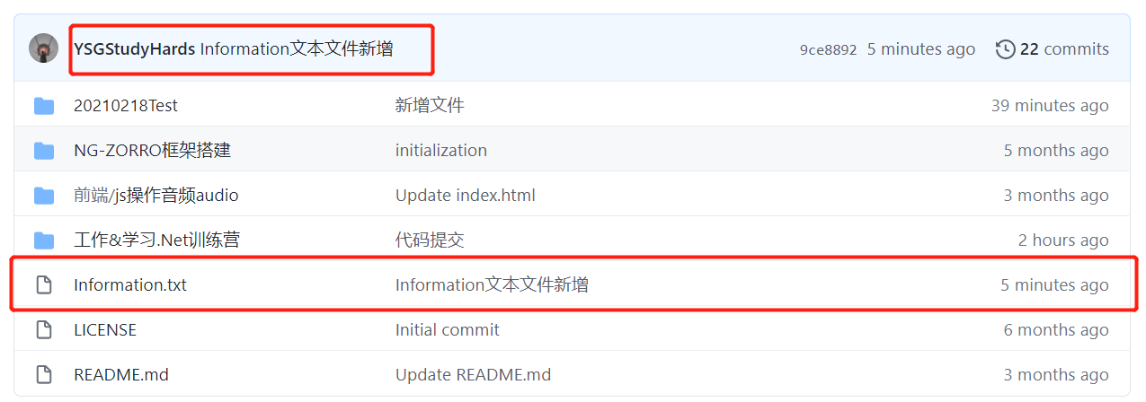 新增Information.txt文本文件,添加至本地暂存区。