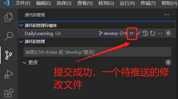 拉:同步,拉取远程代码库中的内容,在多人协同开发中十分的重要,因为假如事先没有同步更新到最新版本有可能会覆盖别人修改的东西,假如拉取后有冲突直接使用VS Code解决冲突即可 git pull。