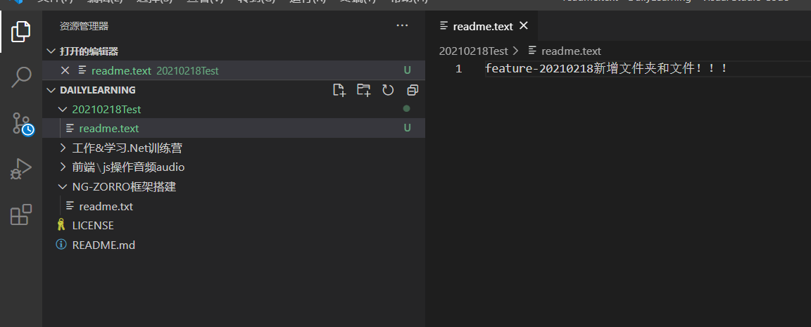 1、feature-20210218子分支中创建一个文件夹和一个文件: