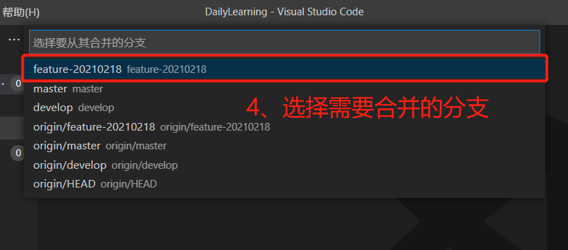 b.选择需要合并过来的分支: