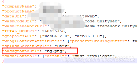 若要改成背景图片,需要将此处改为"backgroundUrl": "图片相对路径",如下图所示,图片最好放在Build目录下