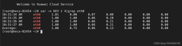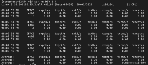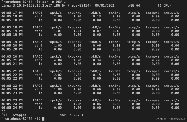 sar -n DEV 1#1秒采集1次,一直采集,直到手动结束