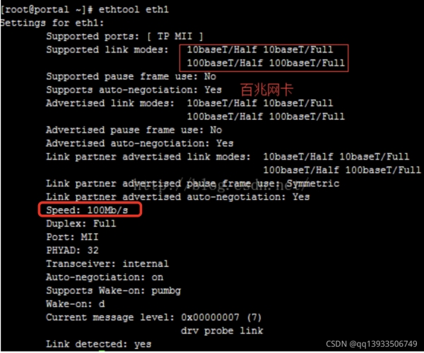 这种情况只能问一下运维来获取主机的带宽,那我们问来的是什么呢,偷来一张图,获取Speed里的数值,这里就是说是百兆宽带