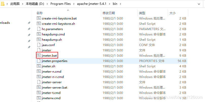 我们将上一步中的压缩包进行解压,进入到下图所示文件目录,双击jmeter.bat即可,如下图所示: