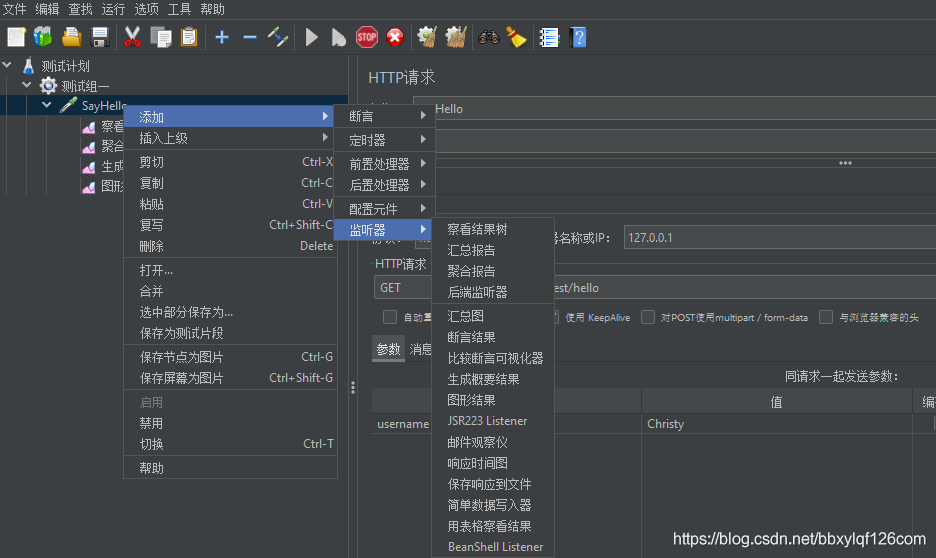 上面的HTTP配置完毕后先不要着急运行,我们可以为该请求配置监听器以监听该HTTP的请求过程以及结果。