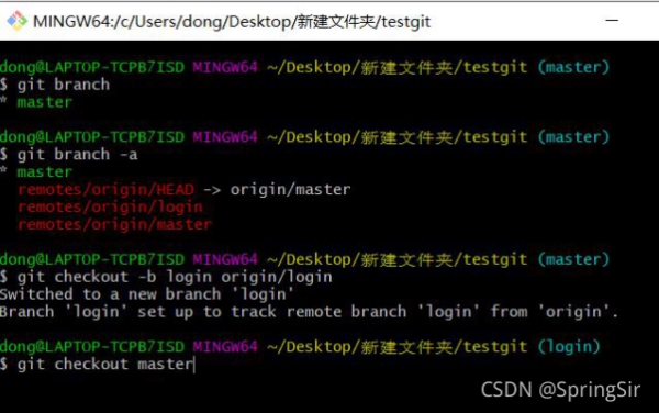 拉取其它分支代码:git checkout -b 分支名 origin/远程分支名