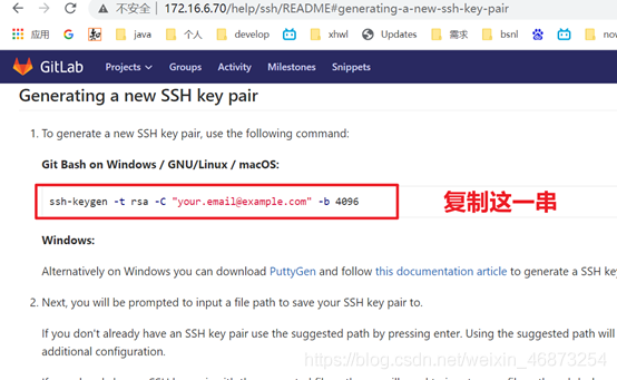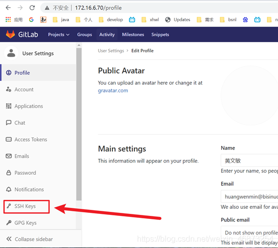 远程代码托管平台有: github、gitee、gitllab, 本章节只对gitlab做ssh配置演示, 其他平台可以百度