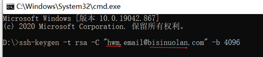 如果如果 C:Usershwm.ssh目录中没有配置文件, 命令暂停的时候. 直接回车就好, 一共敲3个回车.